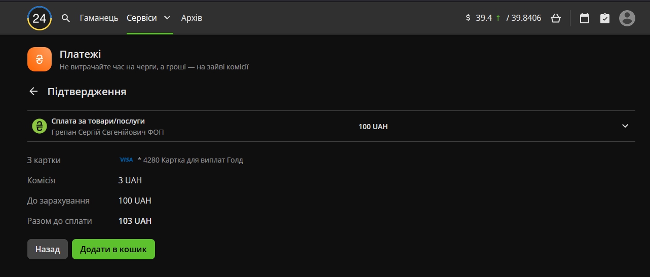 8. Подтверждаете платеж и добавляете в корзину.