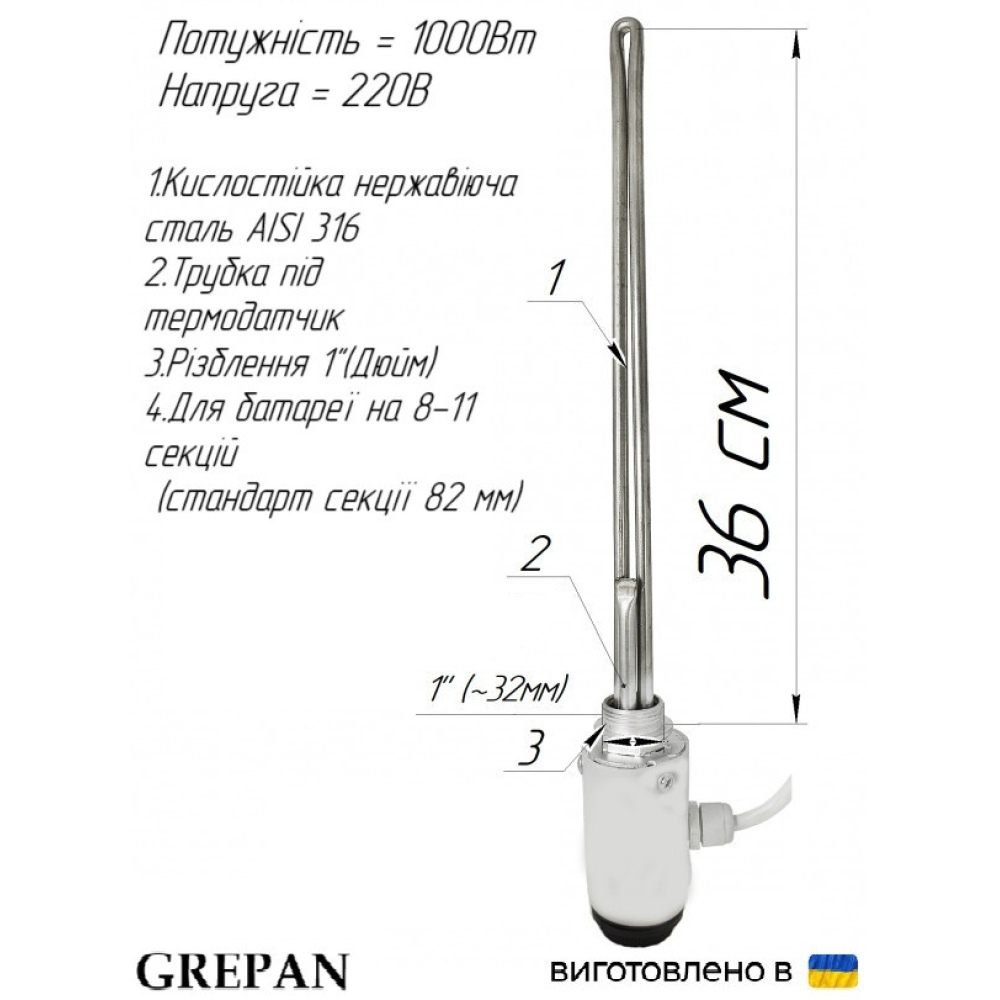 Защита от скачков напряженияРаботает от 110В до 240ВХарактеристики:Напряжение, В: 220Мощность, кВт: 2,0Материал оболочки: Нержавейка, AISI 314Наполнитель ТЭНа: перик..