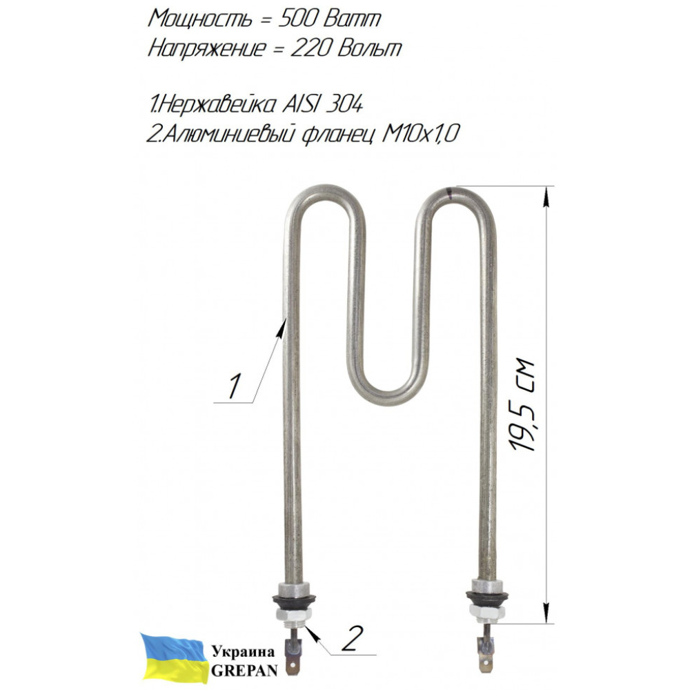 В нашем интернет-магазине можно купить ТЭН: ТЭН для кулера №4''Большой'' - kul004. Также широко представлен ассортимент ТЭНы для кулеров. Широкий ассортимент ТЭНов и нагревательных элементов в магазине grepan.uaХарактеристики:Напряжение, В: 220Мощность, кВт: 0,5Резьба крепления: М10Материал оболочки: Нержавейка, AISI 304Погружная длина, см: 8,5Пайка/сварка: механическийНаполнитель ТЭНа: кварцевый песокРазмеры трубы: 9х0,5Контакт: Контакт "папа"Материал крепления: АлюминийДлина резьбы крепления, мм: 10Метод изготовления крепления: точенийМежосевое расстояние , мм: 60Среда использования: вода..