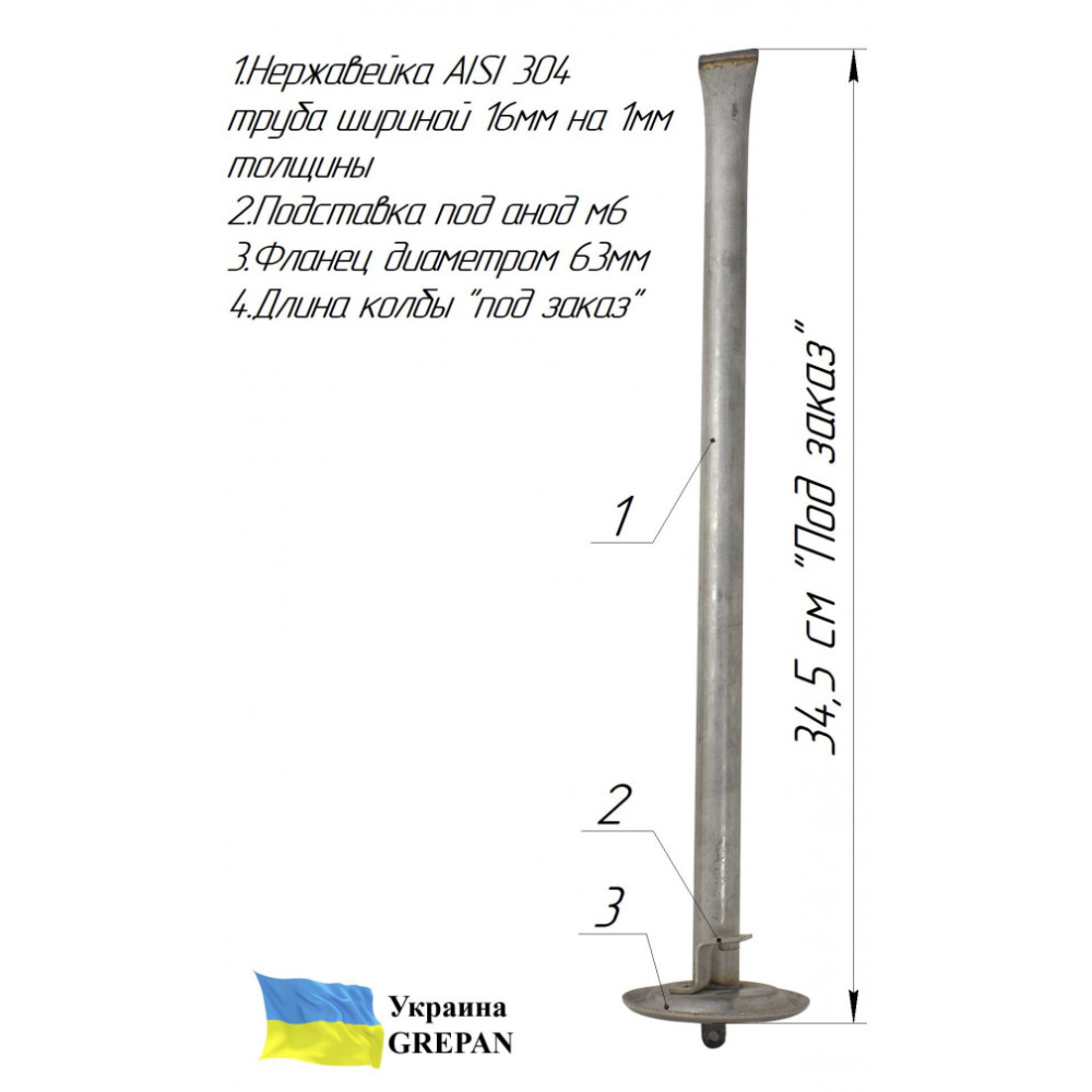 В нашем интернет-магазине можно купить ТЭН: ТЭН для бойлера нержавеющий, 1.5 кВт, №12 - boi012. Также широко представлен ассортимент ТЭНы для бойлеров. Широкий ассортимент ТЭНов и нагревательных элементов в магазине grepan.uaХарактеристики:Напряжение, В: 220Мощность, кВт: 1,5Резьба крепления: 63Материал оболочки: Нержавейка, AISI 316LПогружная длина, см: 34Пайка/сварка: сваркаНаполнитель ТЭНа: периклазМатериал крепления: Нержавейка AISI304Размеры трубы: 9х0,7Контакт: Контакт "папа"Трубка под термодатчик: 2Метод изготовления крепления: штампТолщина пластины, мм: 1Диаметр трубок под термодатчики: 6+6Среда использования: водаМесто под анод: М6..