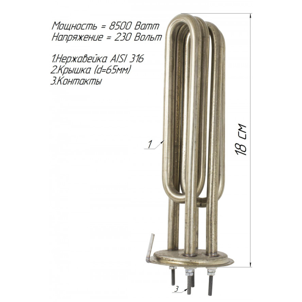 ТЭН для бойлера Атмор (Atmor), нержавейка, 8,5 кВт/220 В (2 ТЕНа/65 мм)"