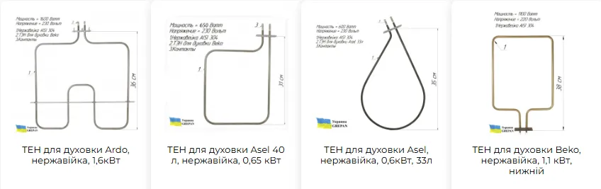 Например, верхний и нижний ТЭН для духовки подбирается для конкретной модели. Поэтому для правильного выбора устройства необходимо: