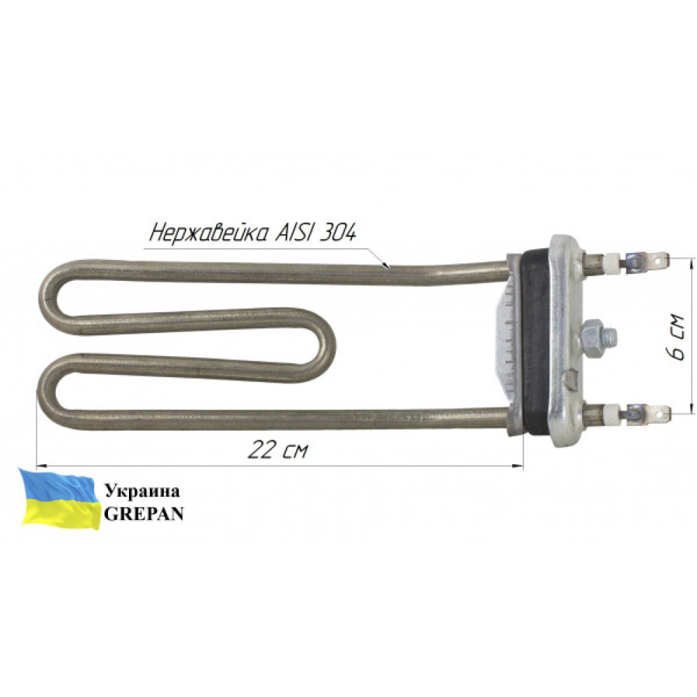 ТЭН для стиральной машины с плавным загибом, нержавейка, 2,1кВт, 22см"