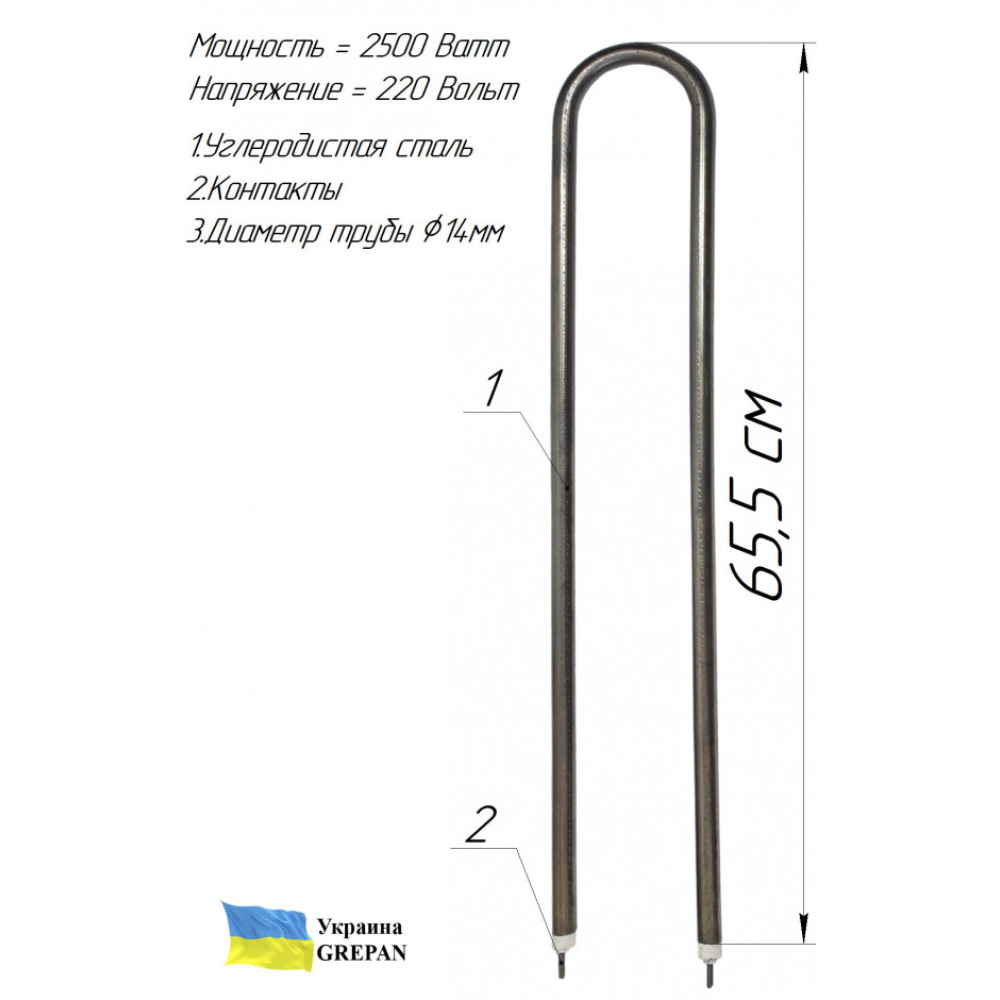 В нашем интернет-магазине можно купить ТЭН: ТЭН котловой (для КПЭ-40, КПЭ-60)''Копыто'' 2,5 кВт углеродистая сталь (черный), М22 - kotl14. Также широко представлен ассортимент ТЭНы для котлов. Широкий ассортимент ТЭНов и нагревательных элементов в магазине grepan.uaХарактеристики:Напряжение, В: 220Мощность, кВт: 2,5Материал оболочки: Углеродистая стальПогружная длина, см: 4,5Размеры трубы: 14х1,0Контакт: М4 шпилькаДлина резьбы крепления, мм: 25Межосевое расстояние , мм: 60..