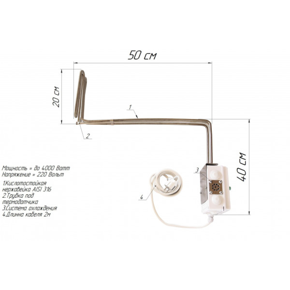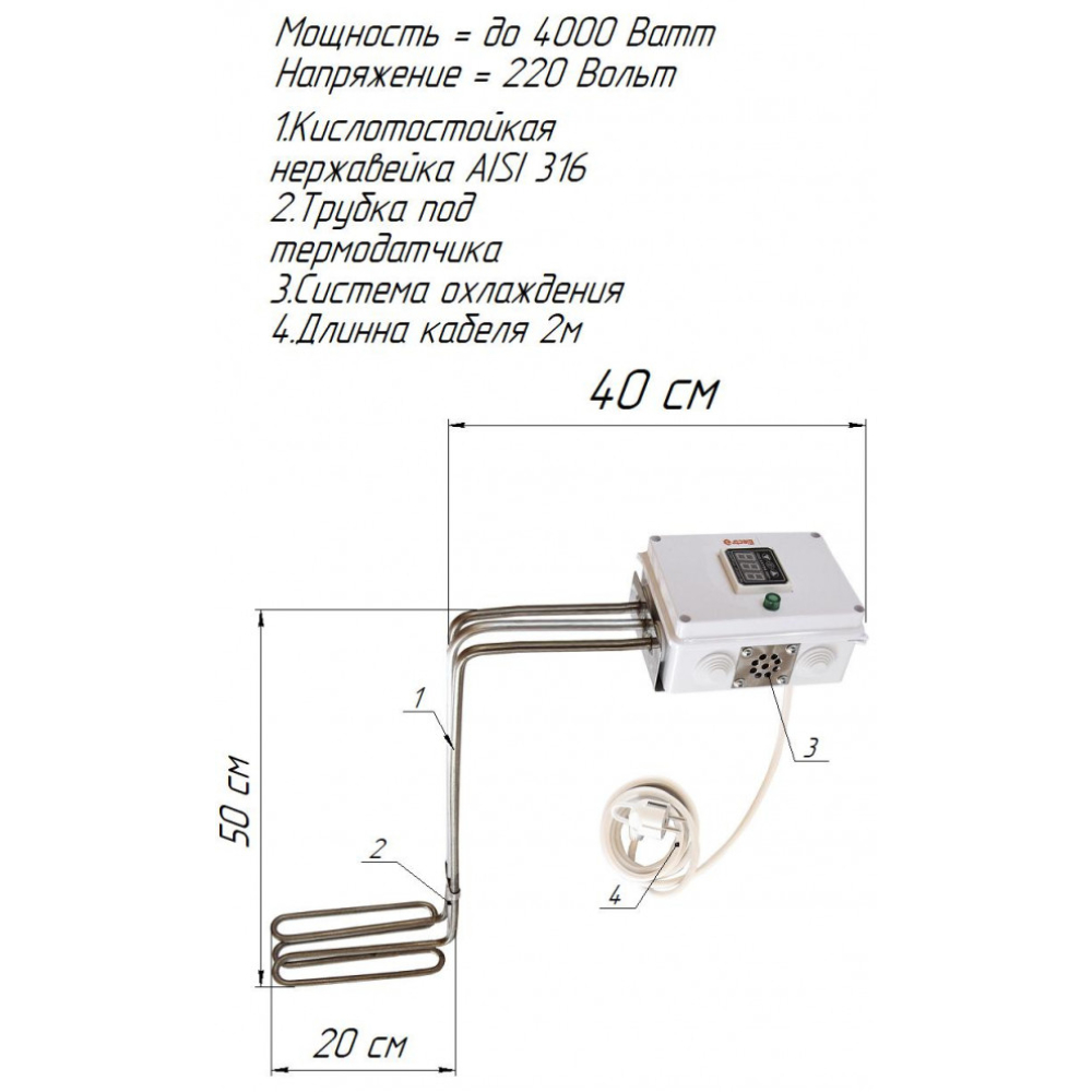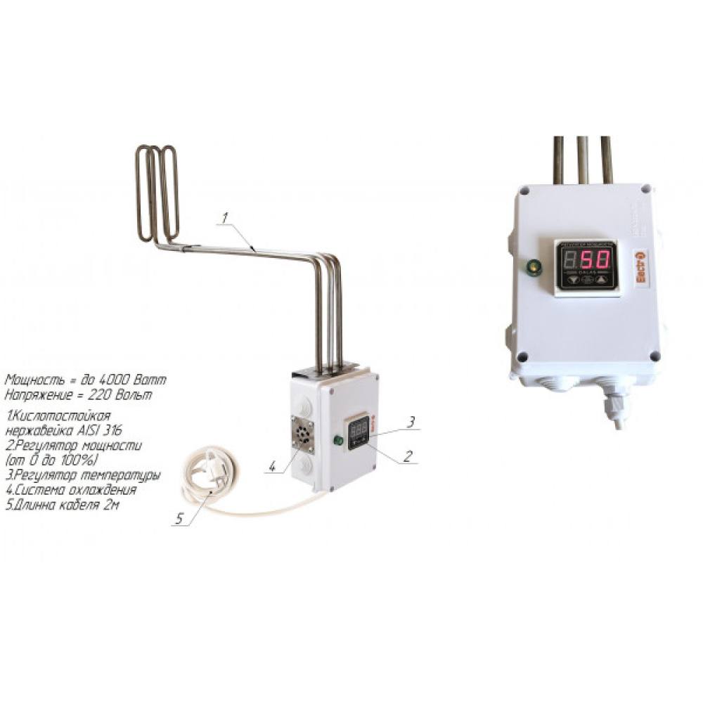 Кип'ятильник з регулятором потужності та терморегулятором, кислостійка нержавійка, до 4кВт"