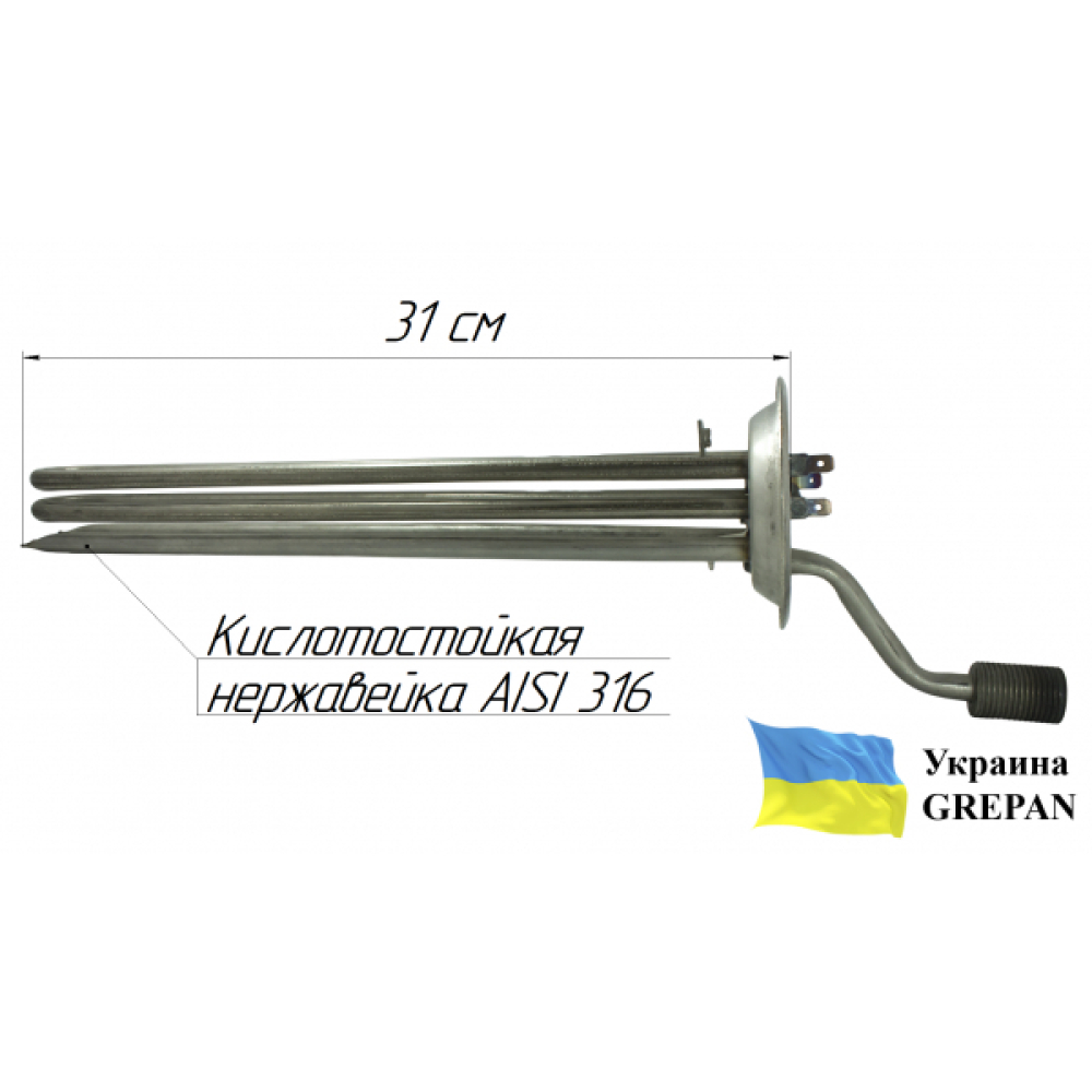 У нашому інтернет-магазині можна купити ТЕН: ТЕН для бойлера нержавіючий, 2,5 кВт, №34 - boi034. Також широко представлений асортимент ТЕНи для бойлерів. Широкий асортимент ТЕНів та нагрівальних елементів у магазині grepan.ua.Характеристики:Напруга, В: 220Потужність, кВт: 2,5Різьблення кріплення: 93Матеріал оболочки: Нержавійка, AISI 316LЗанурювальна довжина, см: 31Пайка/зварювання: зварюванняНаповнювач ТЕНу: періклазРозміри труби: 9х0,7Контакт: М4 (внутр)Матеріал кріплення: Нержавійка AISI304Трубка під термодатчик: 2ТЕНи в Блок-ТЕНі: 1500+1000 ВтМетод виготовлення кріплення: штампТовщина пластини, мм: 1Діаметр трубок для термодатчиків: 6+6Середовище використання: водаМісце під анод: М6..