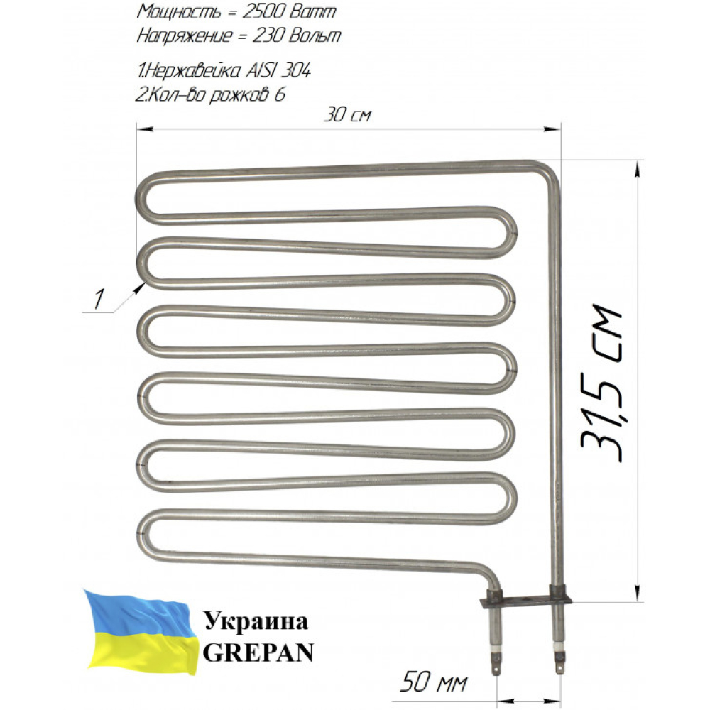 У нашому інтернет-магазині можна купити ТЕН: ТЕН Турбо, нержавійка, 2,5 кВт - duh021. Також широко представлений асортимент ТЕНи для духовки. Широкий асортимент ТЕНів та нагрівальних елементів у магазині grepan.ua.Характеристики:Напруга, В: 220Потужність, кВт: 2,5Матеріал оболочки: Нержавійка, AISI 304Занурювальна довжина, см: 20,5Наповнювач ТЕНу: періклазКонтакт: Контакт "папа"Матеріал кріплення: Вуглецева стальМетод виготовлення кріплення: лазер..