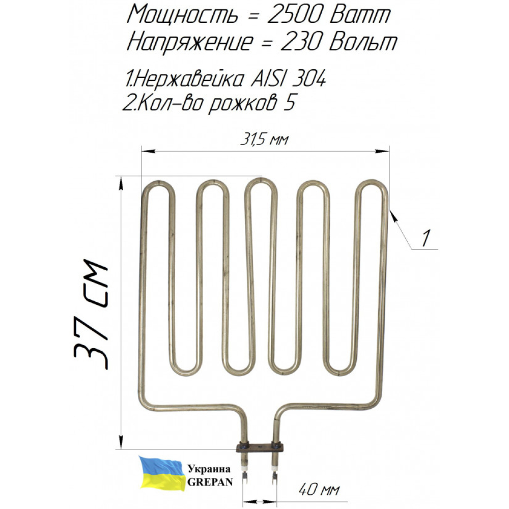Характеристики:Напруга, В: 220Потужність, кВт: 0,8Матеріал оболочки: Вуглецева стальЗанурювальна довжина, мм: 380Наповнювач ТЕНу: Кварцовий пісокКонтакт: М3Матеріал ..