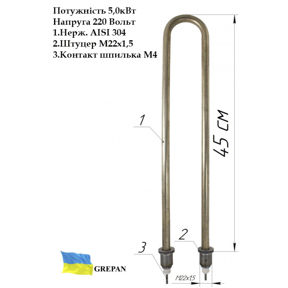 У нашому інтернет-магазині можна купити ТЕН: ТЕН для води, П-образний, нержавійка, 1,5 кВт, М22 - pobr02. Також широко представлений асортимент ТЕНи П-образні для води. Широкий асортимент ТЕНів та нагрівальних елементів у магазині grepan.ua.Характеристики:Напруга, В: 220Потужність, кВт: 1,5Різьблення кріплення: М22Матеріал оболочки: Нержавійка, AISI 304Занурювальна довжина, см: 18,5Пайка/зварювання: зварюванняНаповнювач ТЕНу: кварцевий пісокРозміри труби: 14х1,0Контакт: М4 шпількаМатеріал кріплення: Вуглецева стальДовжина різьби кріплення, мм: 25Метод виготовлення кріплення: точенийМіжосьова відстань, мм: 70Середовище використання: вода..